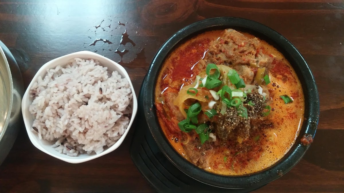 The menu offers a good mix of traditional Korean stew options such as soon tofu (soft tofu stew with seafood), various jeongol hot pots, and grilled dishes like kalbi ribs and spicy pork bulgogi. The combo meals provide an opportunity to sample multiple dishes without overwhelming choices, which is great for newcomers or those visiting with friends. Side dishes are generous and individually served, adding to the home-style vibe.