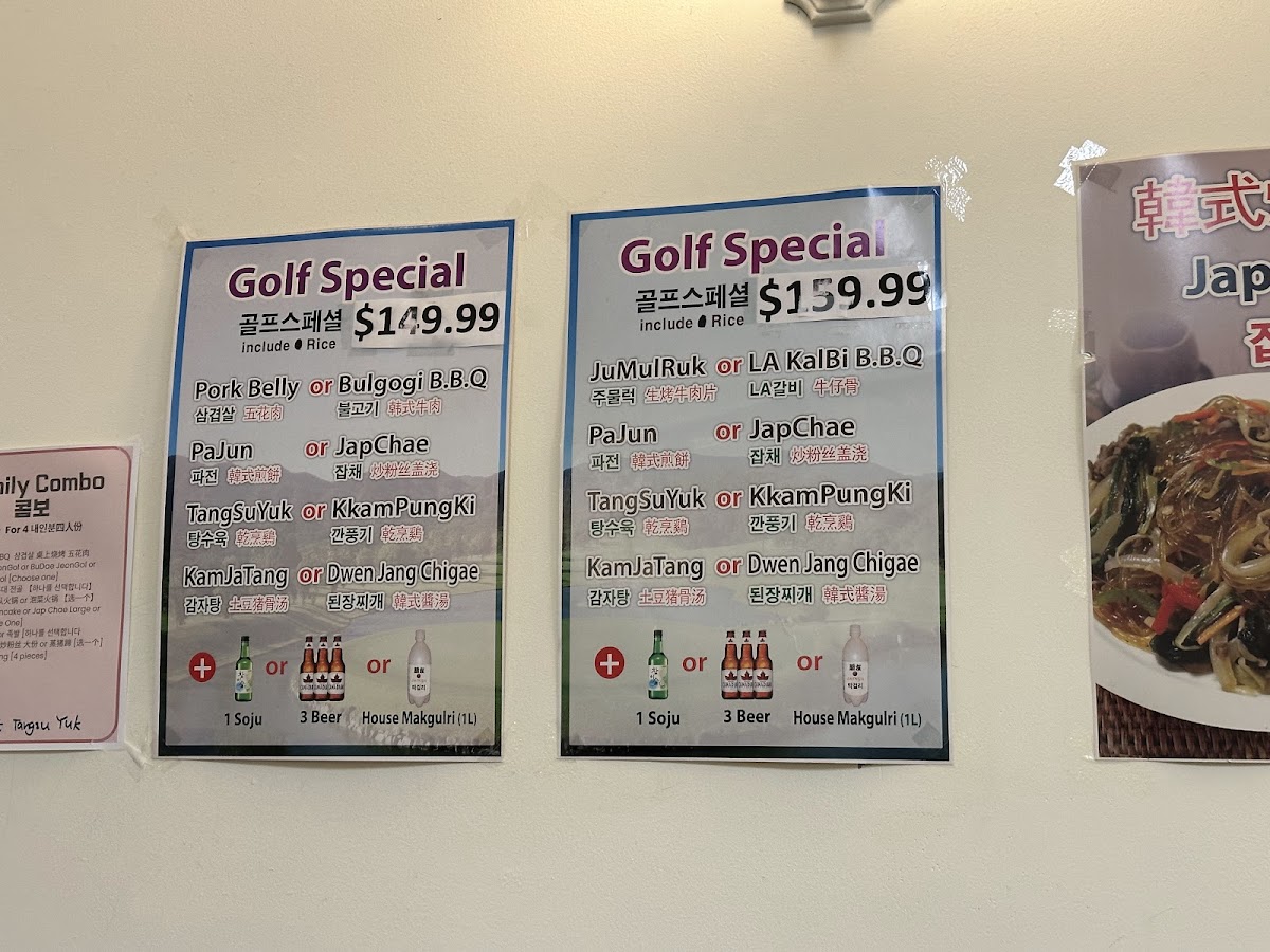 Beverages available include carbonated soft drinks, traditional Korean soju, and beer, providing pairing options for the meal. The menu accommodates casual dining and group sharing, with items such as party trays and hot pots designed for multiple diners. The menu is suitable for lunch or dinner and offers a range of flavors from mild to spicy. Portions tend to be generous, facilitating shared dining experiences.